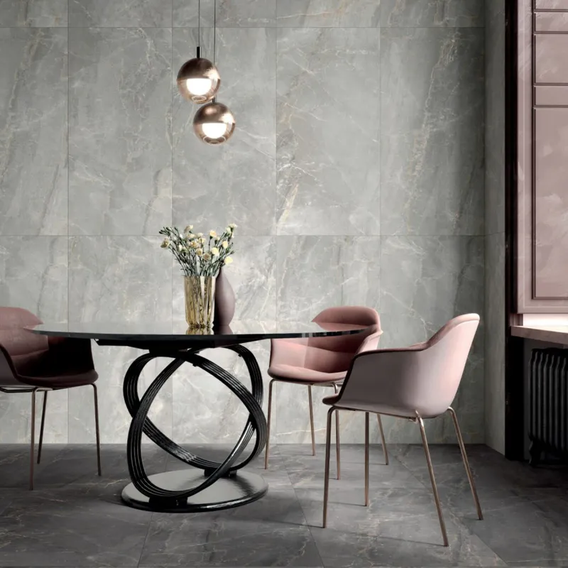 CHARME is a large format stone inspired Italian porcelain that has incredible realism and jaw dropping beauty. Charme Pearl is a soft grey Italian porcelain that has the appearance of cut marble stone. It ha a matt surface and lovely warm ivory veining that is perfectly balanced with the gentle grey tones that dominate the tile and six unique tile faces that are randomly supplied. It is a whimsical and luxurious design suitable for interior floors and walls.