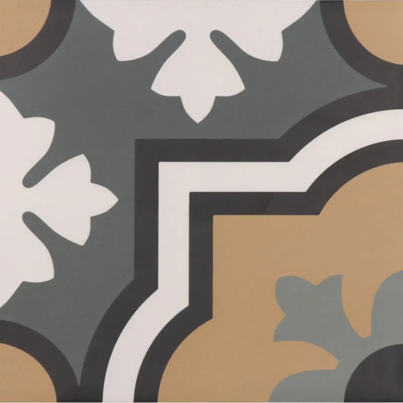 RIVOLI is a Spanish collection inspired by traditional encaustic tiles that once adorned the palaces and historic buildings of Europe, now reimagined in a porcelain format for modern interiors. The RIVOLI collection consists of five patterned tiles, each adorned with ornate geometric designs that create a repeating pattern across the floor or wall. Two plain coloured body tiles coordinate with the decorative collection are also available in Beige and Terre.