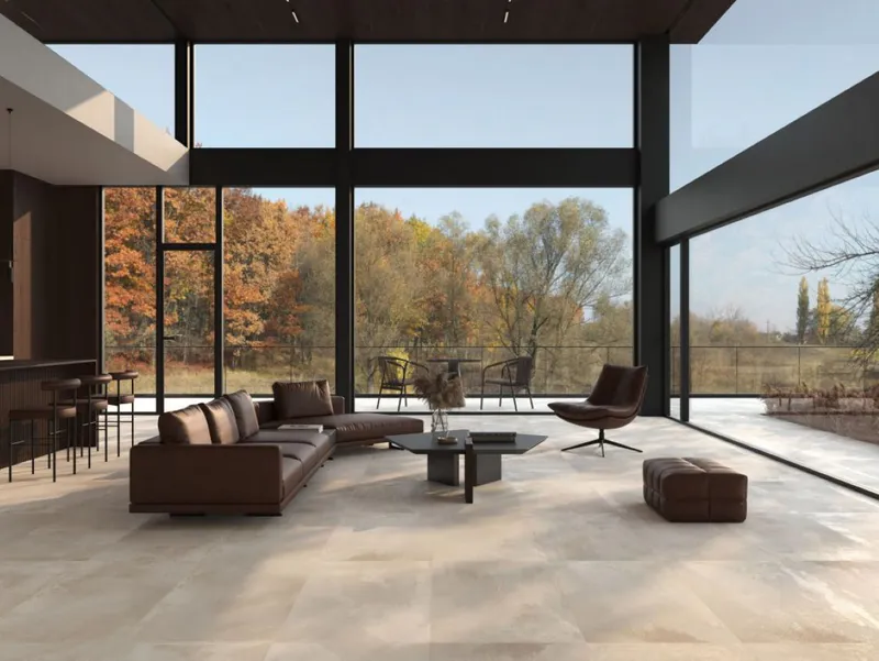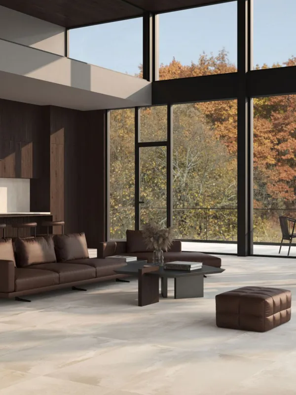 Rust is a glazed porcelain tile that captures the rich, weathered patina of naturally oxidized metal. Its textured relief and irregular corrosion patterns create an authentic aged effect. The large-format design is ideal for sleek contemporary residential or commercial spaces.